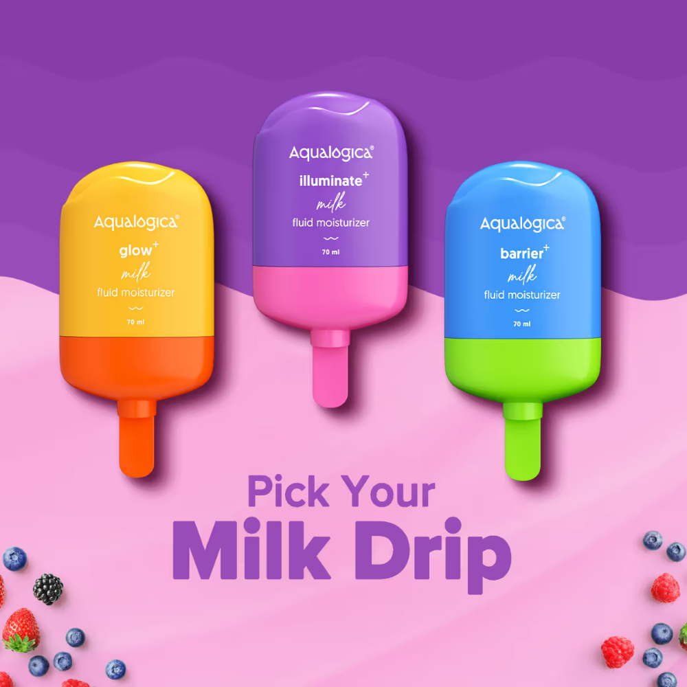 Lactose Intolerance? Got milk? Well, now your skincare does! Welcome the latest addition to the Aqualogica moisturizing fam- Illuminate+ Milk Fluid Moisturizer. It’s everything you want in a moisturizer (and more), minus that gross, sticky, heavy feeling. Light as air and rich as milk – seriously, you’ll want to toss all your winter moisturizers for this one. The melt-in-your-skin milk texture slides right into your skin, layers like a dream, and gives you a solid 48 hours of deep moisturization. It comes loaded with wildberries to brighten and even out your skin tone. Alpha-arbutin tackles those pesky dark spots, and hyaluronic acid locks in moisture like a pro. Your skin is deeply hydrated, dewy, and even toned. Keeping the best for the last – this moisturizer comes in a cute popsicle squeezer that you would love to flaunt. Whether it’s on your shelf or in your bag, people will ask you where you scored it from! Whip up some desserts, and get ready to sip on that softness – Aqualogica is taking you milk drip town!