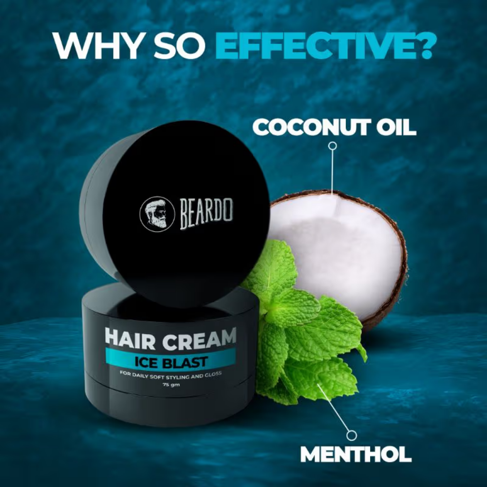 Beardo Ice Blast Hair Cream gives daily soft styling and gloss. Beat the heat with the ultra-light, ultra-cool Beardo Ice Blast Hair Cream.