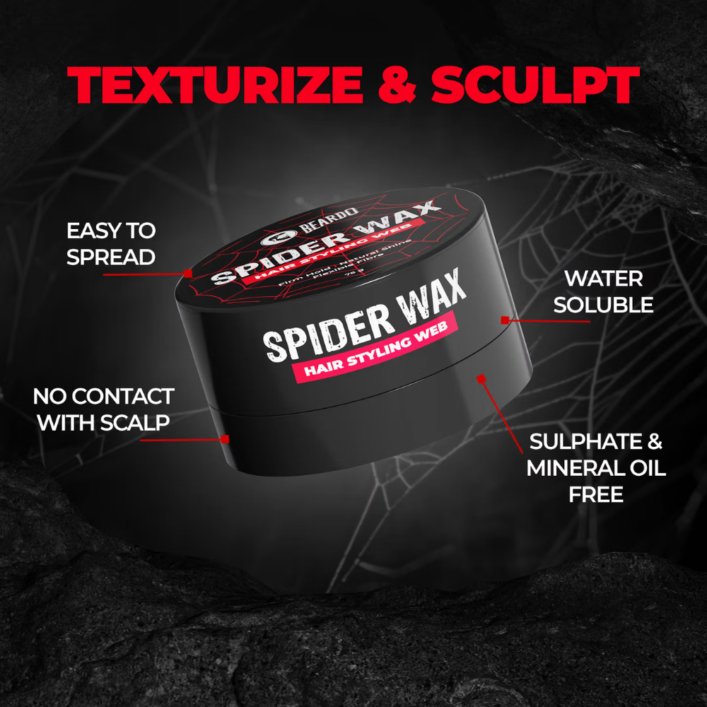 Beardo Spider Wax is an innovative hair styling fibre that gives effortlessly sculpted hair. With the new advanced technology, this wax turns into a web-like texture and provides strong hold with a natural shine to the hair. Suitable for all hair types and hairstyles throughout the day.