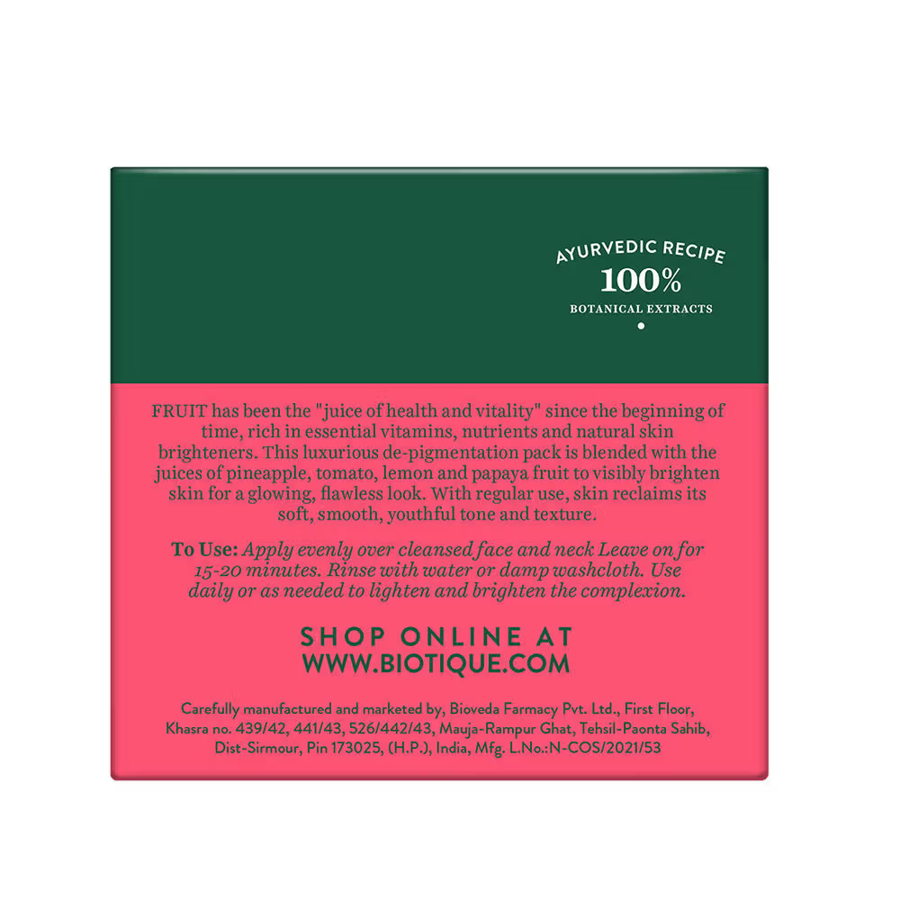 Multani mitti (Fuller’s earth), Gem (Garric), Yasad bhasma (Yashad bhasma), Tamator (Lycopersicum esculentum), Ananas (Ananas comosus), Kikargaund (Acacia Arabica), Paste base Q.S.