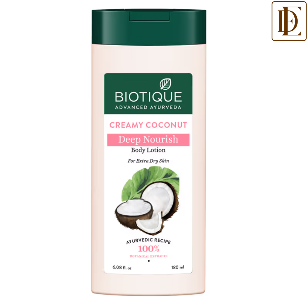 DescriptionThis nutritious Body Lotion enriched with creamy Coconut is a ‘Miracle Liquid’ to nourish, soothe and heal extra dry skin. The potent botanical extracts of Masoor, Sarson and Tulsi heals, soothes and repairs the skin. Leaves the skin smooth, supple and nourished.Ingredients:Tulsi Leaves Extract, Masoor Seed Extract, Mudga Seed Extract, Narikela Oil, Sarson Seed Oil, Purified Water-Q.S.Coco ButterCocoa butter is high in fatty acids and hydrates the skin deeply, making it a wonderful addition to body moisturizers. Cocoa butter is high in antioxidants, which help fight off free-radical damage to the skin.