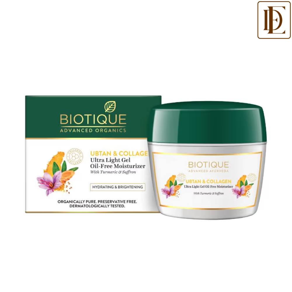 Ubtan is known for its extraordinary properties that help enhance the skin complexion. This luxurious hydrating and brightening Biotique Ubtan & Collagen Ultra Light Gel Oil-Free Moisturizer, blended with the goodness of turmeric and saffron, instantly hydrates to restore a fresh, bright, youthful glow to skin that needs moisture, not oil.