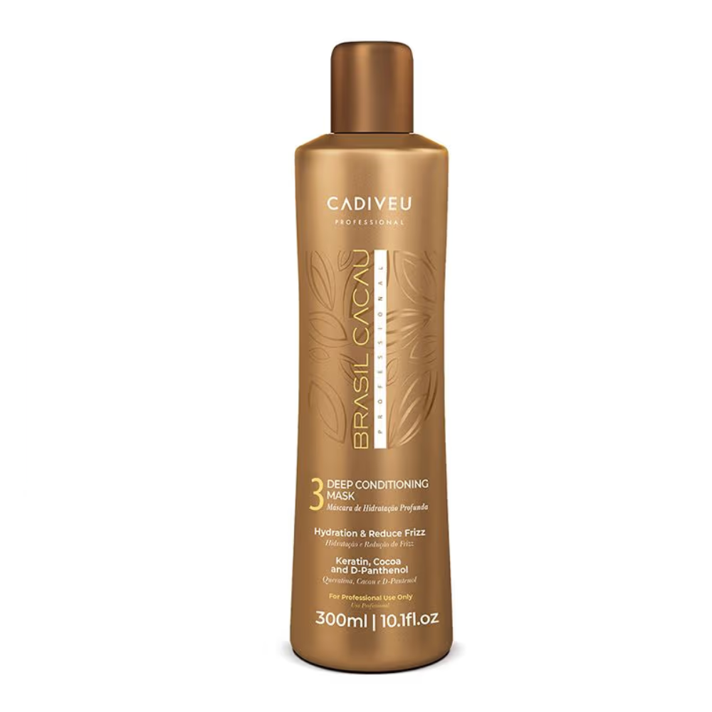 - Rinse and apply the Cadiveu Professional Brasil Cacau Deep Conditioning Mask and let it act for 3 to 6 minutes and then rinse again.