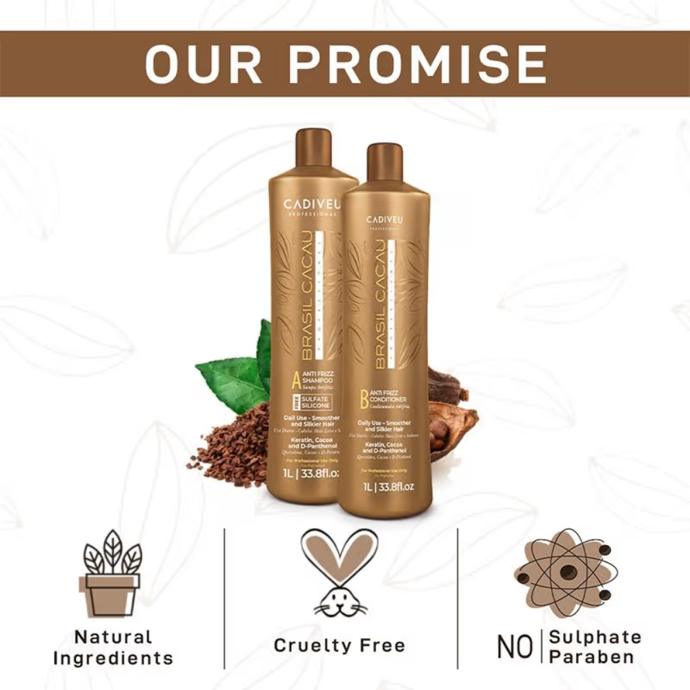 Create a smoother and shinier look while reducing frizz with Cadiveu Professional Brasil Cacau Anti Frizz Conditioner. This conditioner regenerates the inner and outer hair shaft, promoting a smoother and shinier look. Combining keratin, cocoa butter and panthenol, it ensures long lasting results. This anti-frizz conditioner will reinforce your hair’s internal structure, smoothing the cuticle and eliminating frizz. Incorporating Brazilian keratin technology, it protects your hair, making it smooth and shiny.