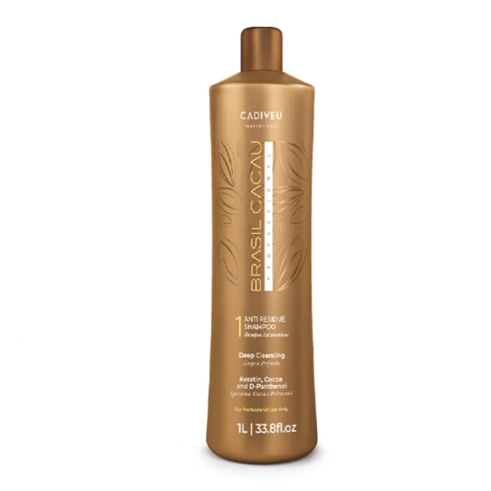 Step one in the application process and its alkaline pH (9,00), Cadiveu Professional Brasil Cacau Anti Residue Shampoo opens the hair cuticles eliminating impurities, preparing the hair for the thermal reconstruction. Its main active ingredients are keratin, cocoa and d-panthenol which restores your hair from within, eliminates frizz, adds shine and softness.