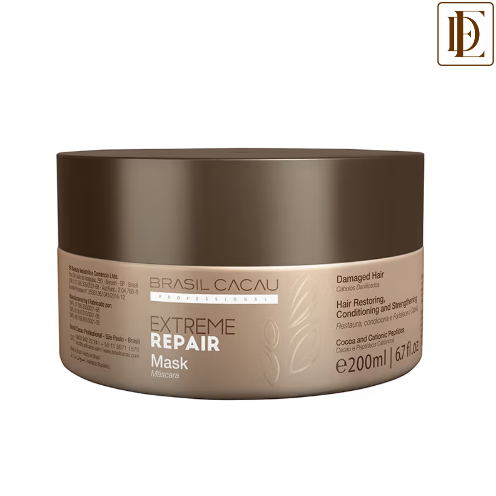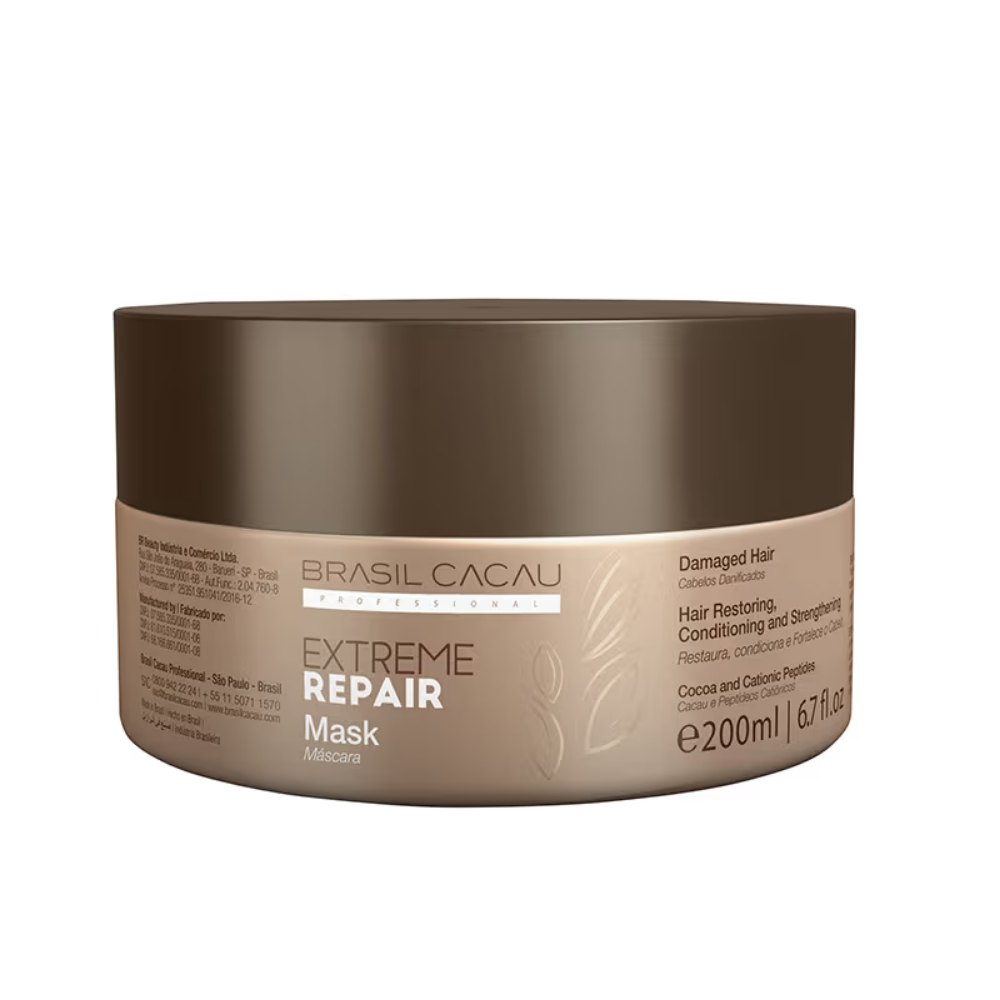Suitable for extremely damaged hair, Cadiveu Professional Brasil Cacau Extreme Repair Mask works in the cuticle and cortex repairing the damage caused by mechanical, chemical and thermal processes. The cationic pepticles form a protective shield around the fiber, increasing the strength, flexibility and radiance of the air.