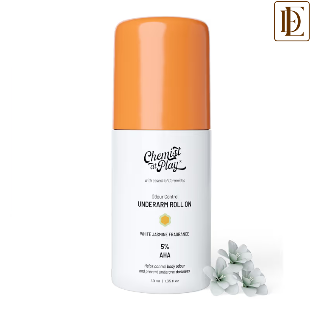 Chemist at Play 5% AHA Underarm Roll On Deodrant Lactic Acid for Men & Women – White Jasmine (40ml)