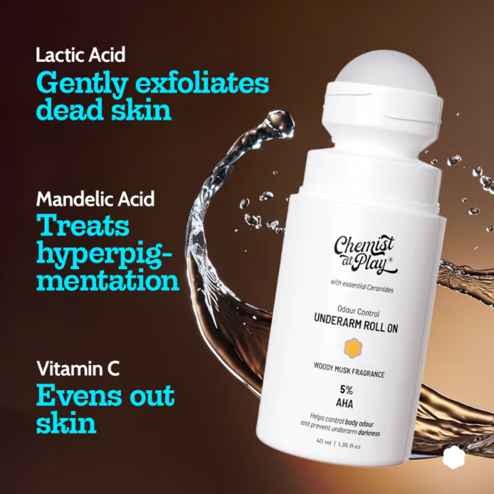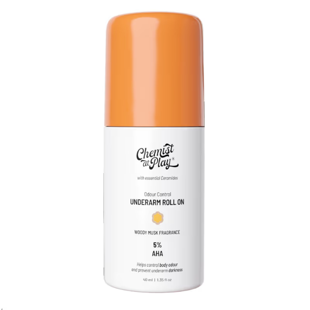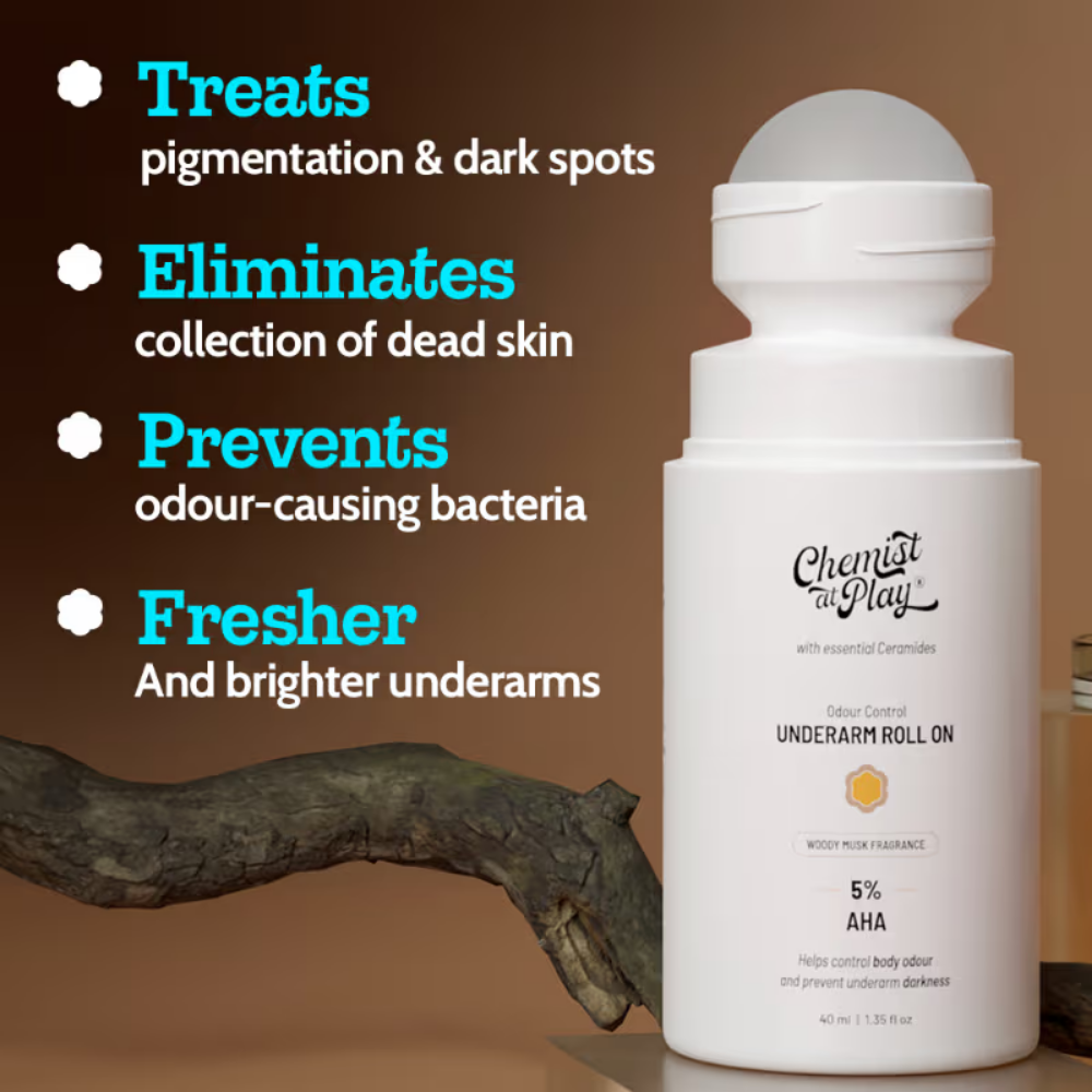 Chemist at Play 5% AHA Underarm Roll On Lactic Acid for Dark Underarm & Odour Control – Woody Musk (40ml)