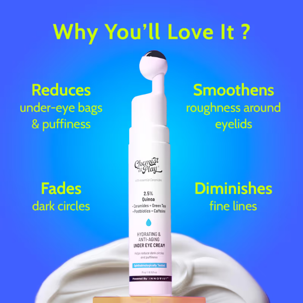 The skin around your eyes is very thin and delicate as compared to other body parts. As a result, it is more vulnerable to environmental stressors and injury, as well as aging. Chemist at Play Under Eye Cream is what your eyes require specific attention to address concerns such as dark circles, puffiness, and fine lines.