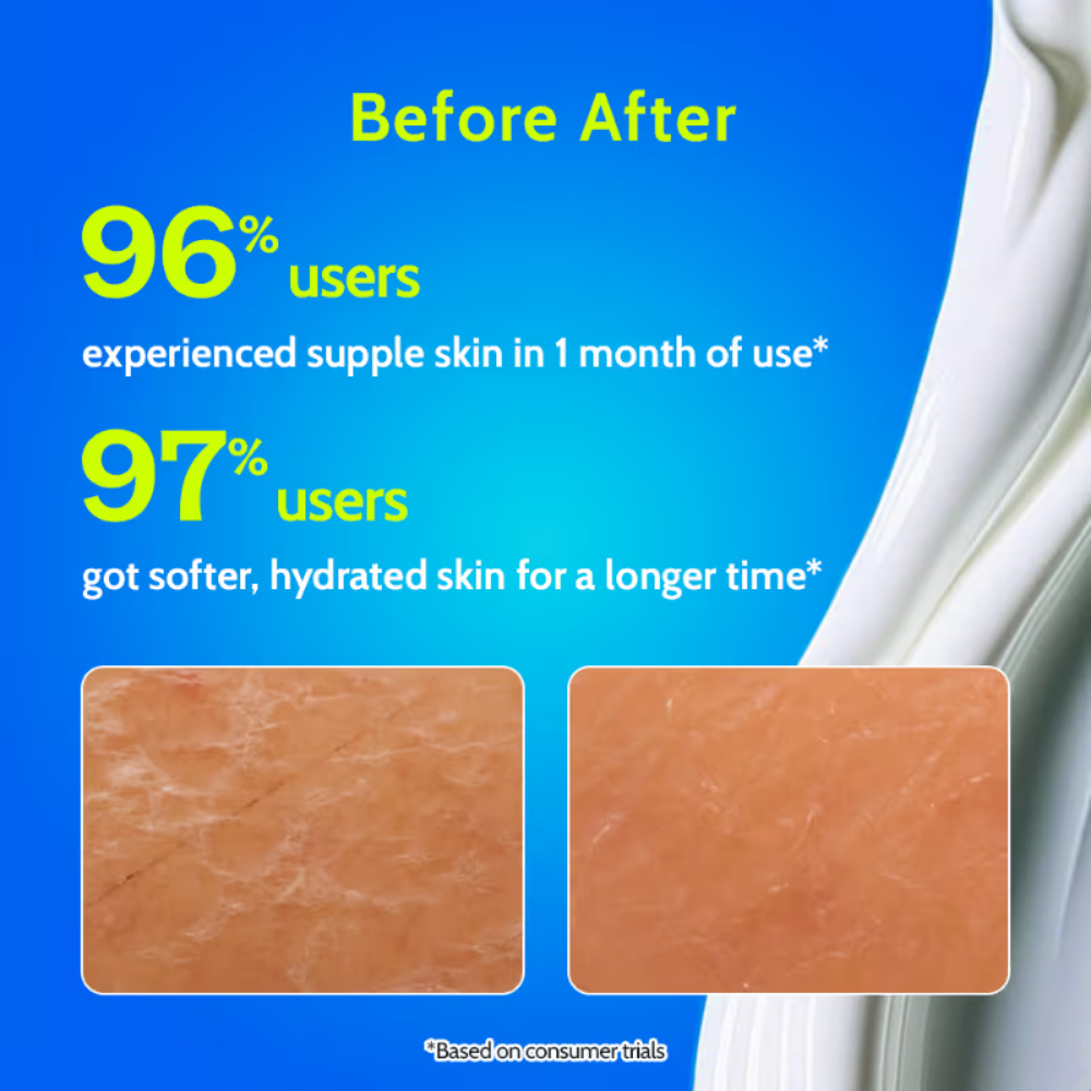 • Intense Hydration: It is formulated with a dynamic duo of PGA (Polyglutamic Acid) and Hyaluronic Acid. PGA has the ability to hold up to five times more moisture. It forms a protective barrier on the skin, preventing moisture loss and promoting long-lasting hydration. Complementing PGA, Hyaluronic Acid has exceptional hydrating properties. It has the remarkable ability to attract and retain moisture, helping to restore and maintain optimal hydration levels in the skin. Together, they deliver intense hydration to every inch of your body.