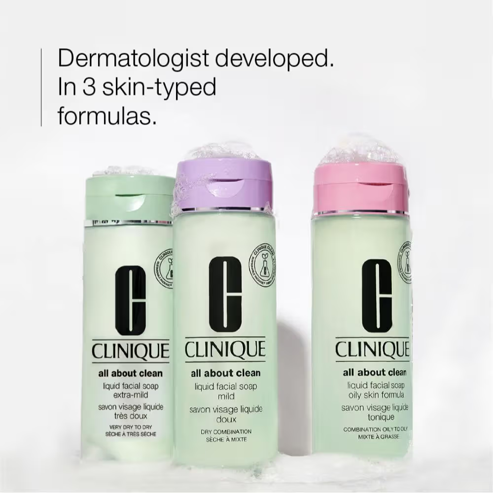 What it is: Step 1 in Clinique’s customized 3-Step Skin Care System. Dermatologist-developed liquid soap cleanses gently yet thoroughly.