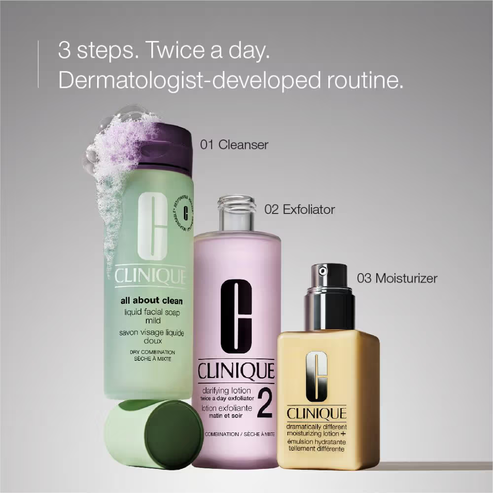 Great to know: The secret’s in the system. The revolutionary 3-Step Skincare System was created by a celebrated dermatologist. It’s simple, customized and takes just three minutes, twice a day: cleanse with Facial Soap, exfoliate with Clarifying Lotion, moisturize with Dramatically Different Moisturizing Lotion+, oil-free Gel or lightweight Jelly.