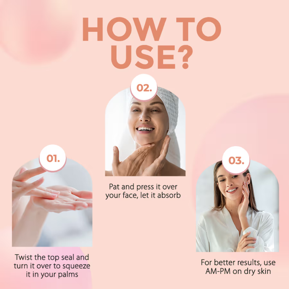 Remove the top seal, gently twist the cap to the right, turn over and squeeze.Clean your face with a cleanser or Face wash & dry your skin. Apply small portion of Fat Water to your palms, then pat and press over your face; letting it absorb. Use it twice in day and night on clean & dry skin. Twist again to close.