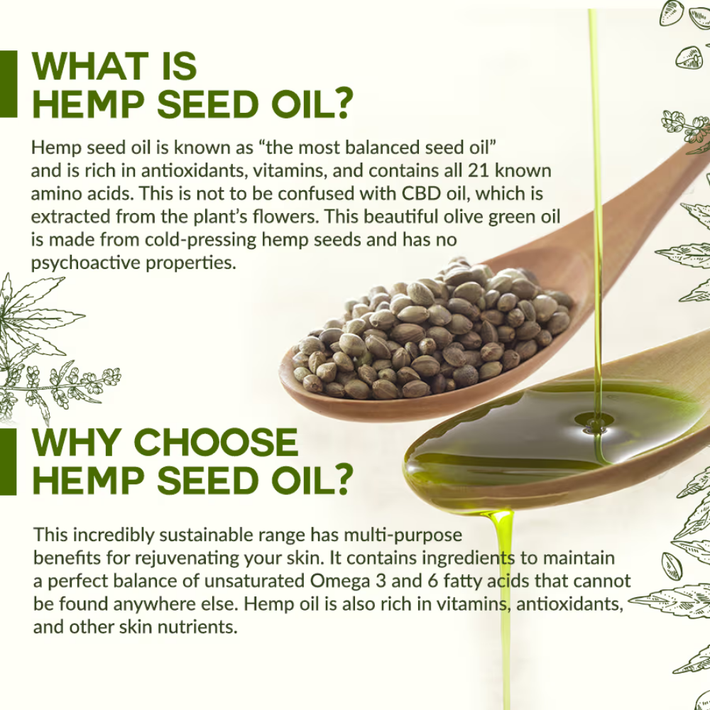- Hemp Seed Oil: This cold pressed oil is a non-comedogenic oil, rich in fatty acids