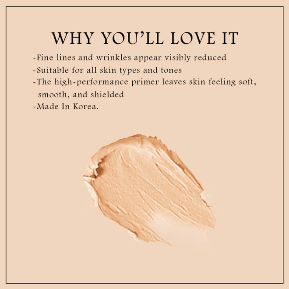 - Fine lines and wrinkles appear visibly reduced. Suitable for all skin types and tones. The high-performance primer leaves skin feeling soft, smooth, and shielded.