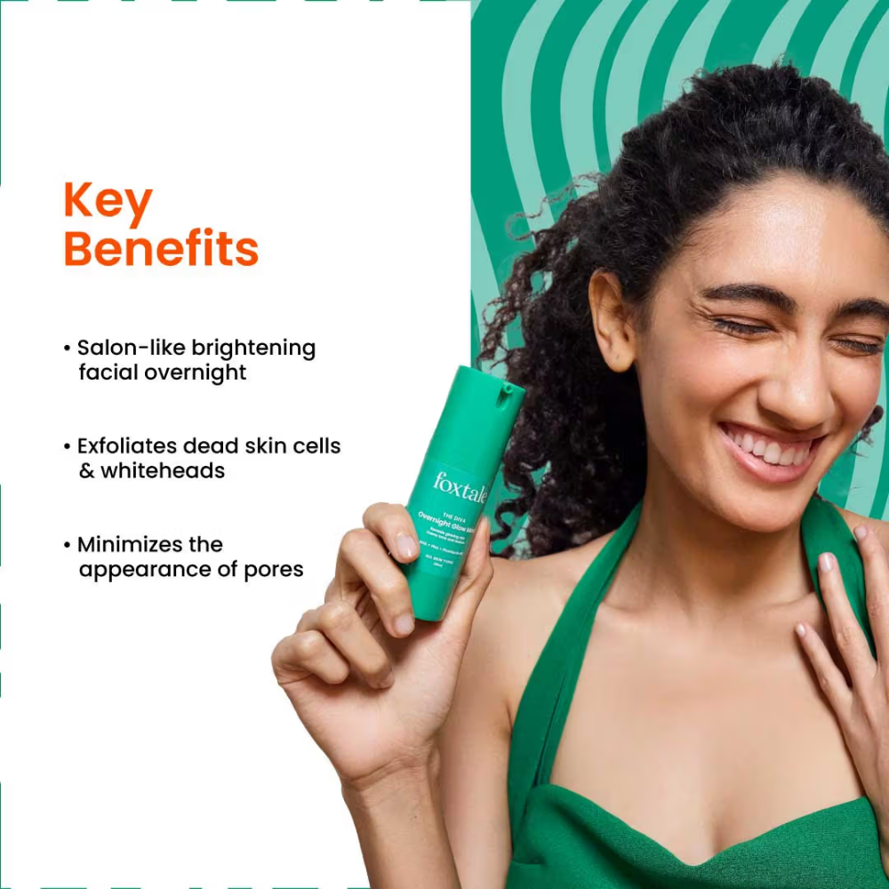 - Step 2: Apply 1 to 2 pumps of the overnight glow mask to the entire face to boost glow.