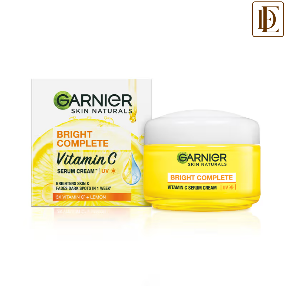 Brighten your skin and reduce three types of spots, dark spots, pimple spots, and UV spots , with the Garnier Bright Complete Vitamin C Serum Cream. With the power of fresh yuzu lemon from Japan and 3X vitamin C , this brightening serum cream has an ultra-light formula that goes into the skin to give you long-lasting glow# and spotless, bright skin in just one week .