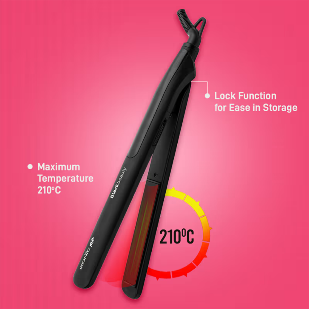 The Ikonic me Black beauty hair iron has sophisticated 3D floating plates that are covered with a high spec gloss finish for a smooth, snag-free style. Best personal use straightener with 1-inch Ceramic Flat Iron, you can get exquisite curls, waves, and silky hair. This flat iron hair straightener is suitable for all hair kinds and styles, whether fine or thick.