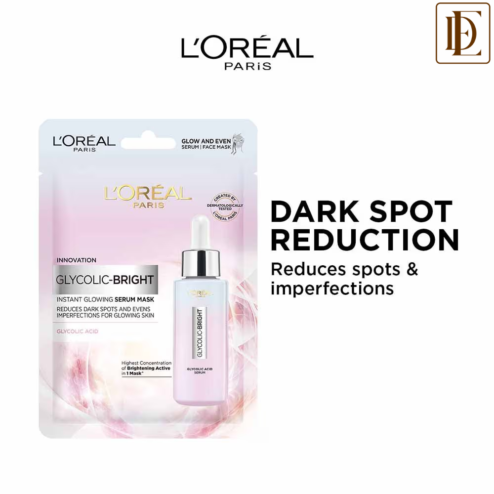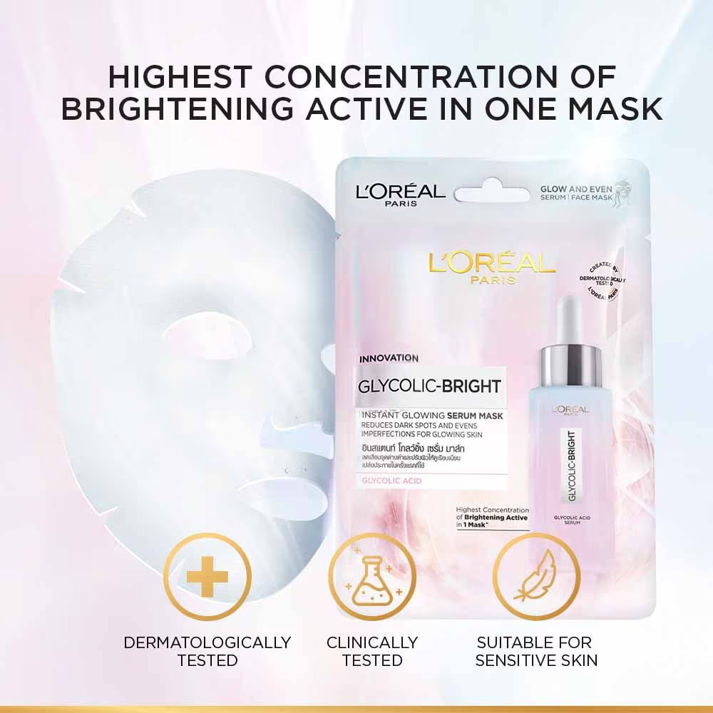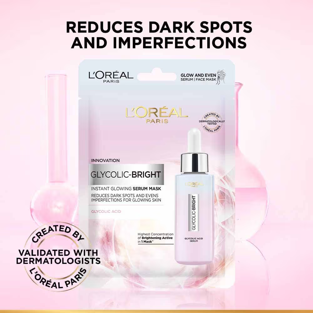 L’Oreal Paris Glycolic Bright Glowing Serum Sheet Mask, Face Mask for Glowing Skin (22g)