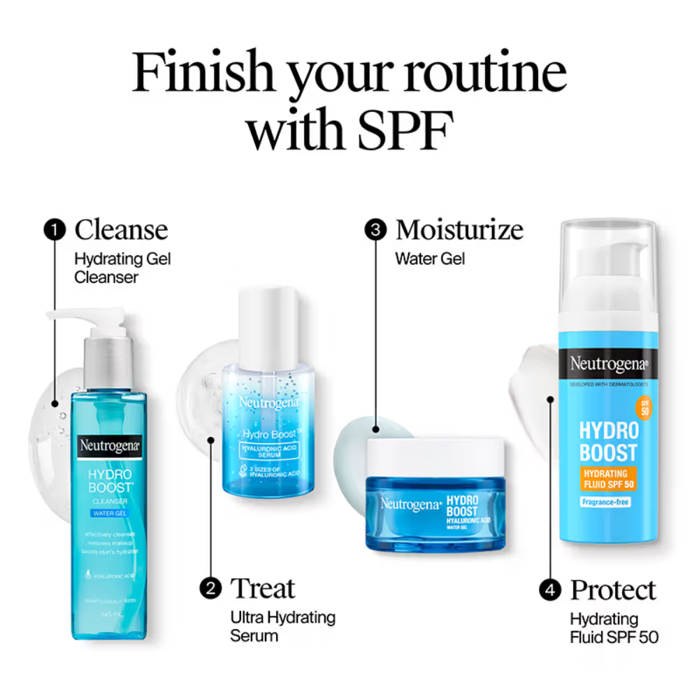 Neutrogena Hydro Boost Hydrating Fluid SPF 50 is a lightweight, fragrance-free sunscreen designed to provide intense hydration while offering high-level sun protection. Enriched with hyaluronic acid, this fluid helps to replenish and lock in moisture, leaving the skin feeling smooth and refreshed. Its non-greasy formula absorbs quickly, making it ideal for daily use under makeup or on its own. With broad-spectrum SPF 50, it effectively shields the skin from harmful UVA, UVB rays even long UVA rays, helping to prevent sun damage and premature aging. Perfect for all skin types, this hydrating fluid ensures your skin stays protected and hydrated throughout the day.