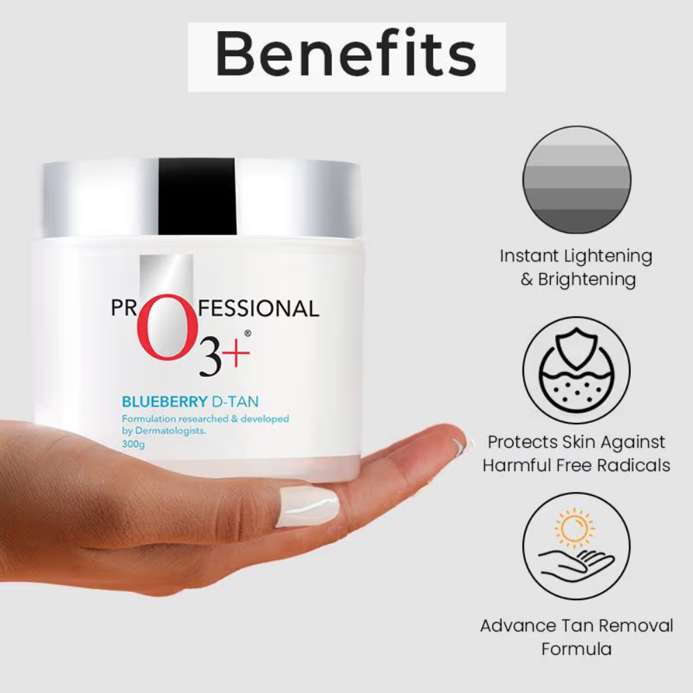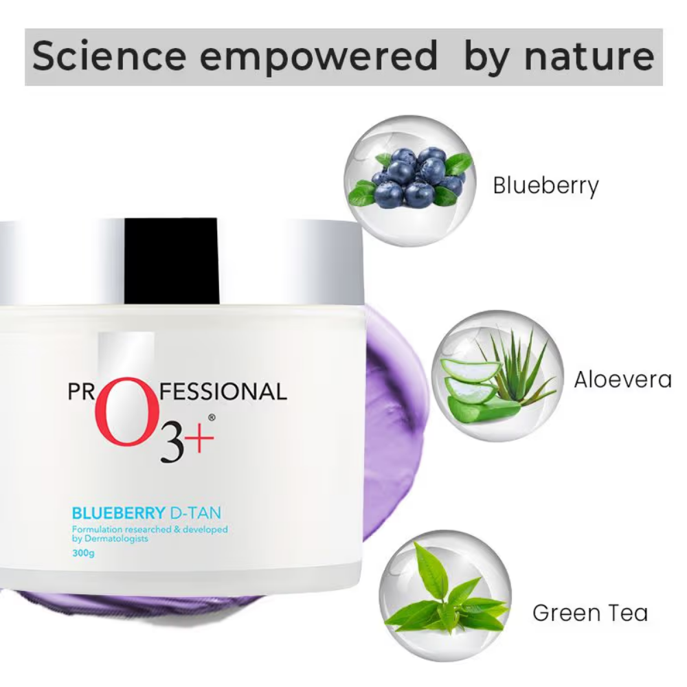 - Natural tan removal: O3+ Blueberry Detan is enriched with natural ingredients like aloe vera and green tea, which provide a gentle yet effective way to remove tan and brighten the skin.