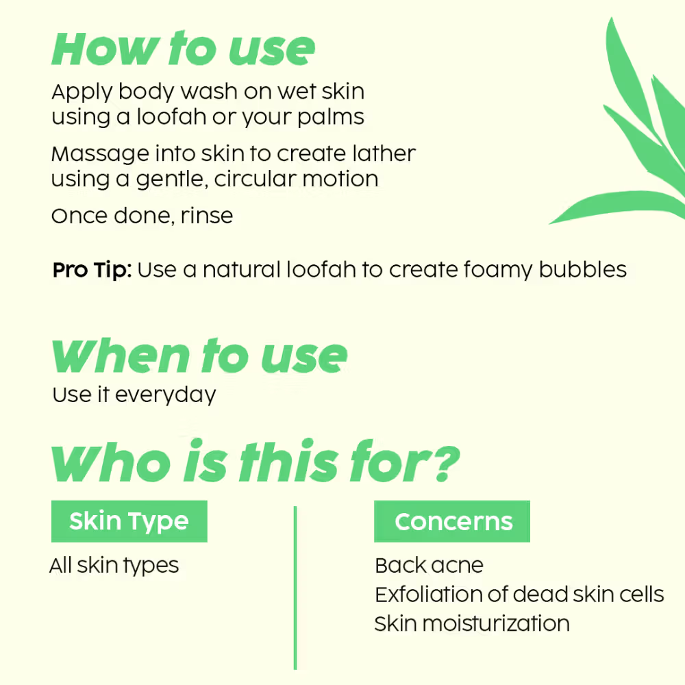 - Apply body wash on wet skin using a loofah or your palms. Massage into skin to create lather using a gentle, circular motion (all over your body). Once done, rinse.