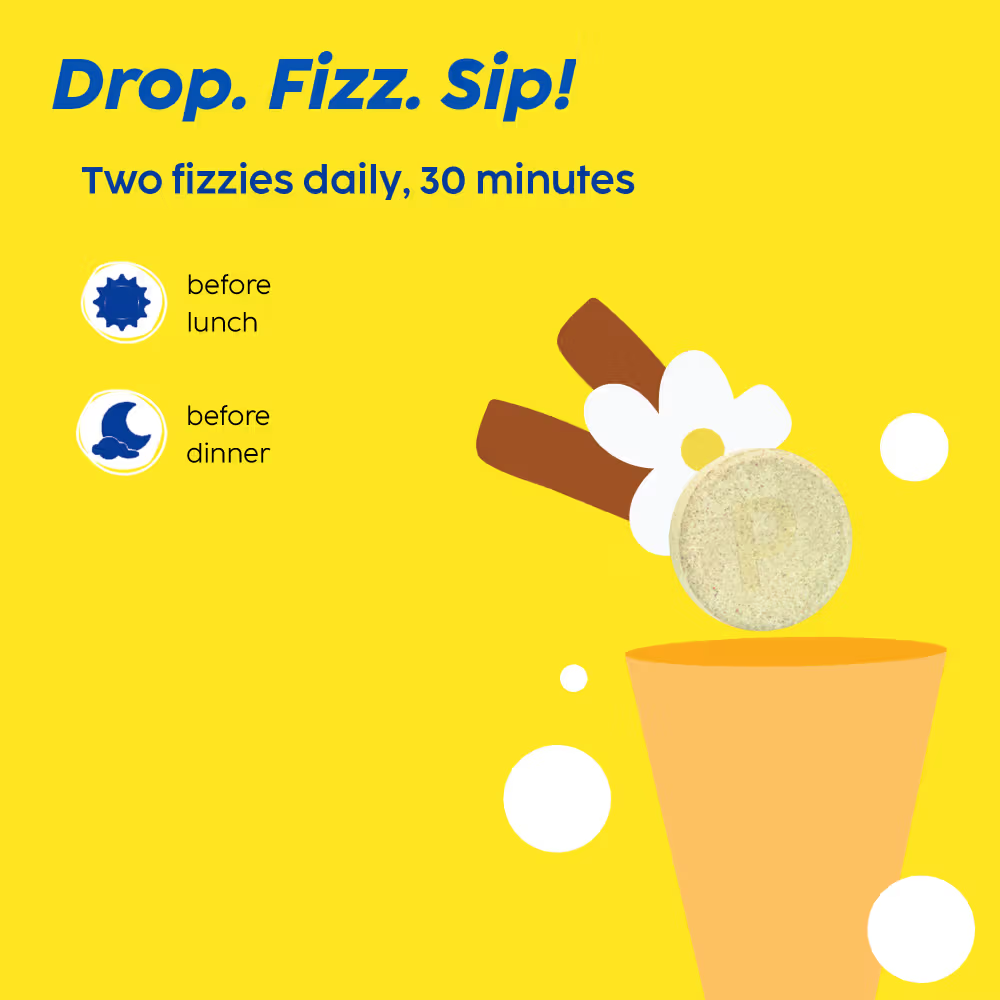 - Drop one tablet in glass of 150-200 ml of water.