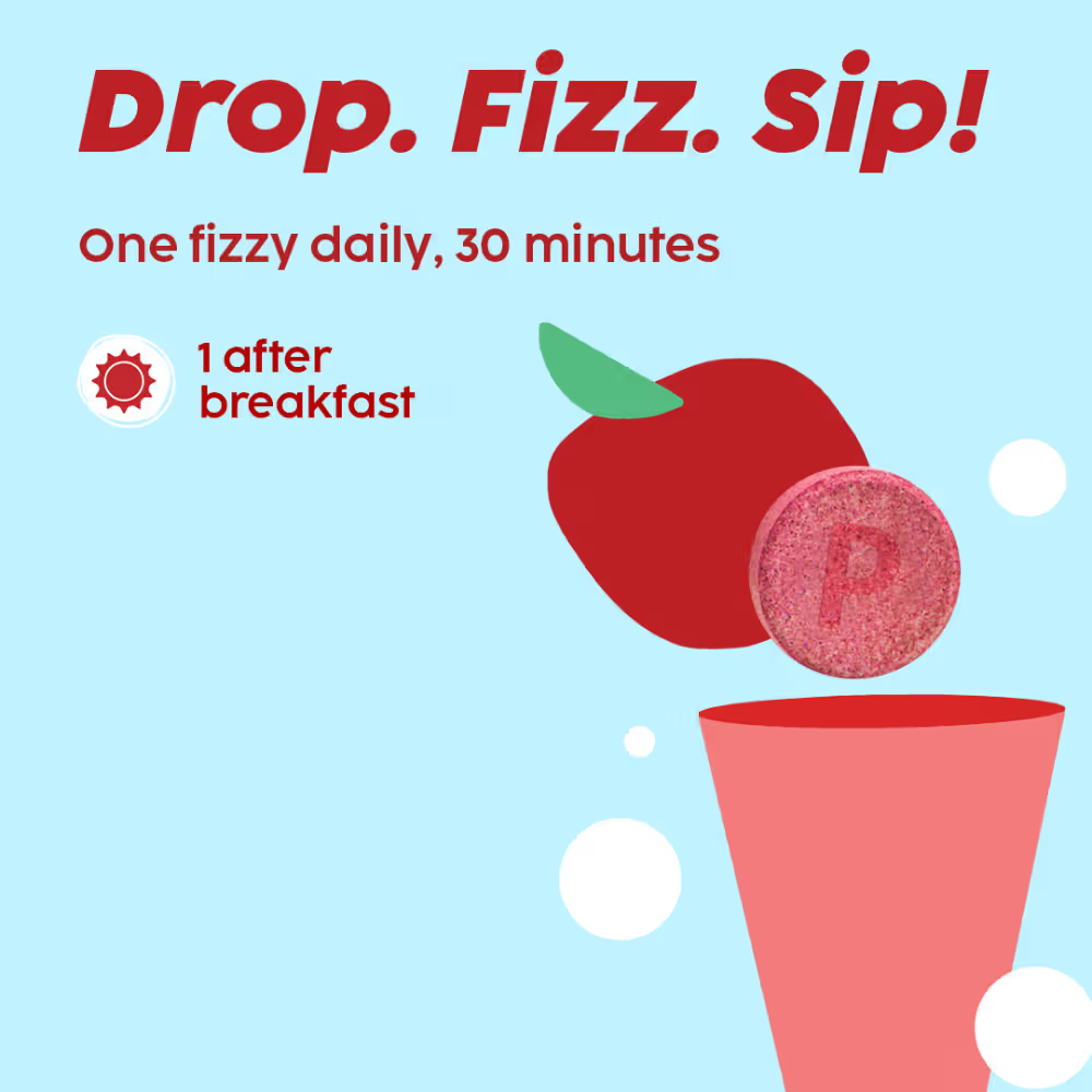 Dosage: Consume 1 fizzy drink daily, 30 minutes after breakfast.
