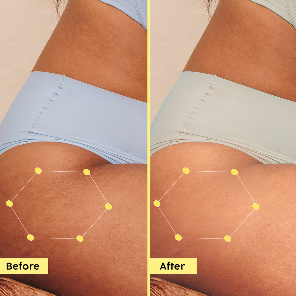 - Take a generous amount, massage in circular motions for 1-2 minutes on intimate areas, as well as knees, neck, elbows, underarms, inner thighs, and bikini area. Rinse off for a revitalised and smooth sensation.