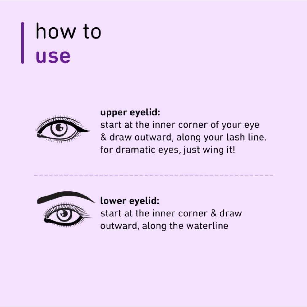 - Start at the inner corner of your eye and draw outward, along your lash line.