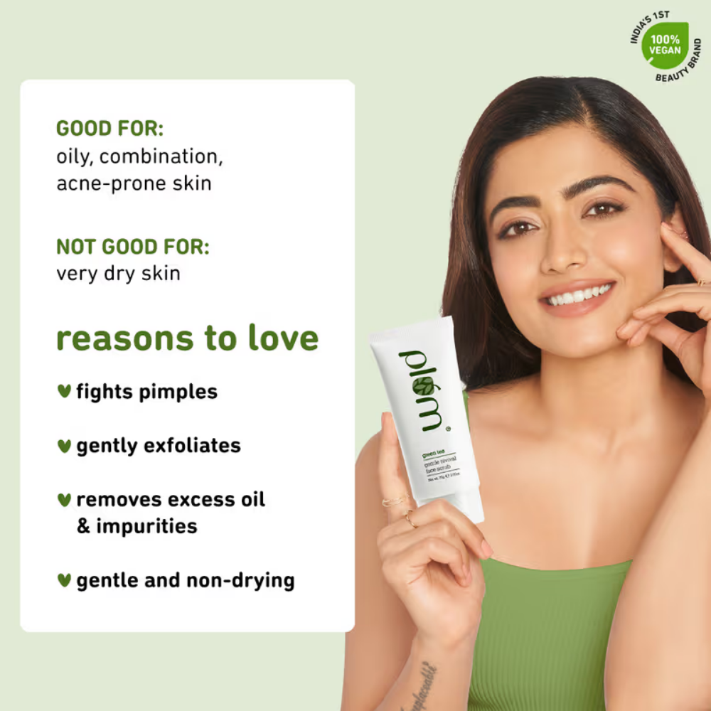 - Take a coin-sized amount of the tea scrub on your palm, and gently massage onto your skin for two to three minutes.
