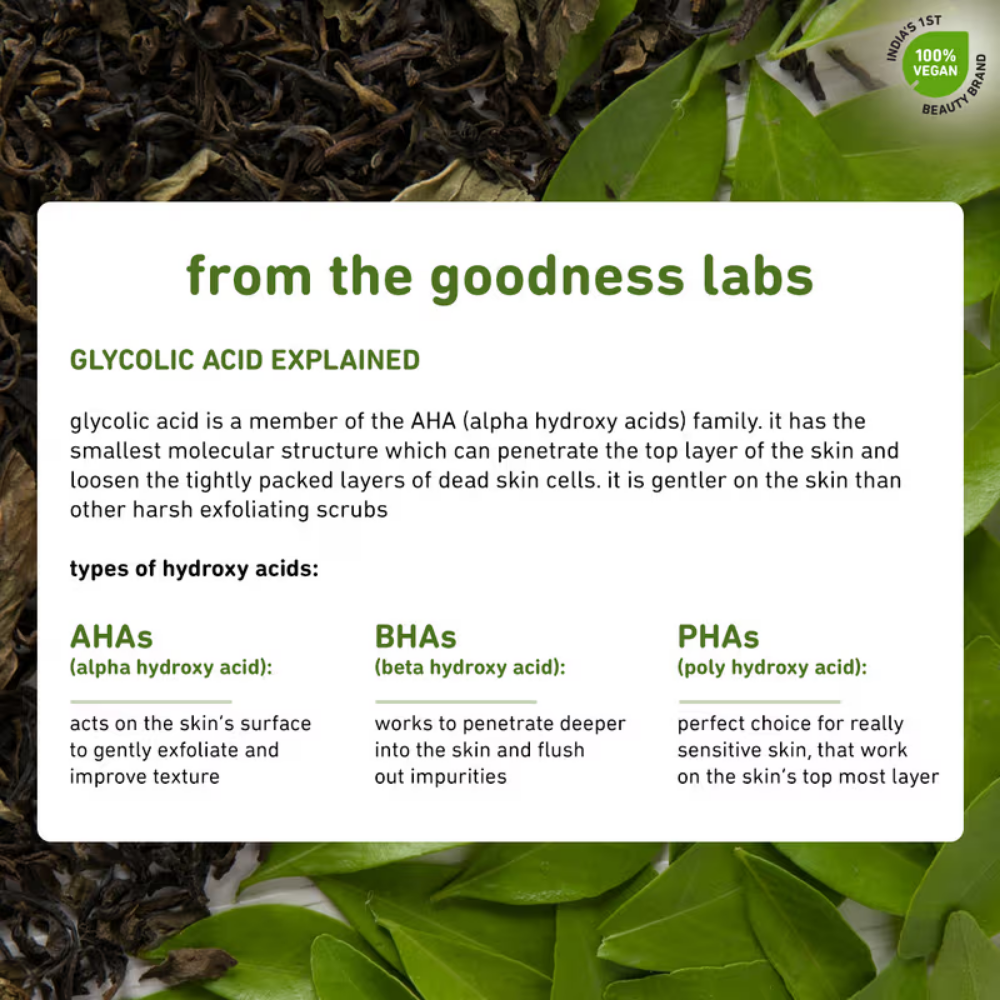 - Glycolic Acid: Your ultimate exfoliation expert! This power ingredient manages to cleanse your skin from deep within, so you’re left with refreshed skin that is free of dead skin cells.
