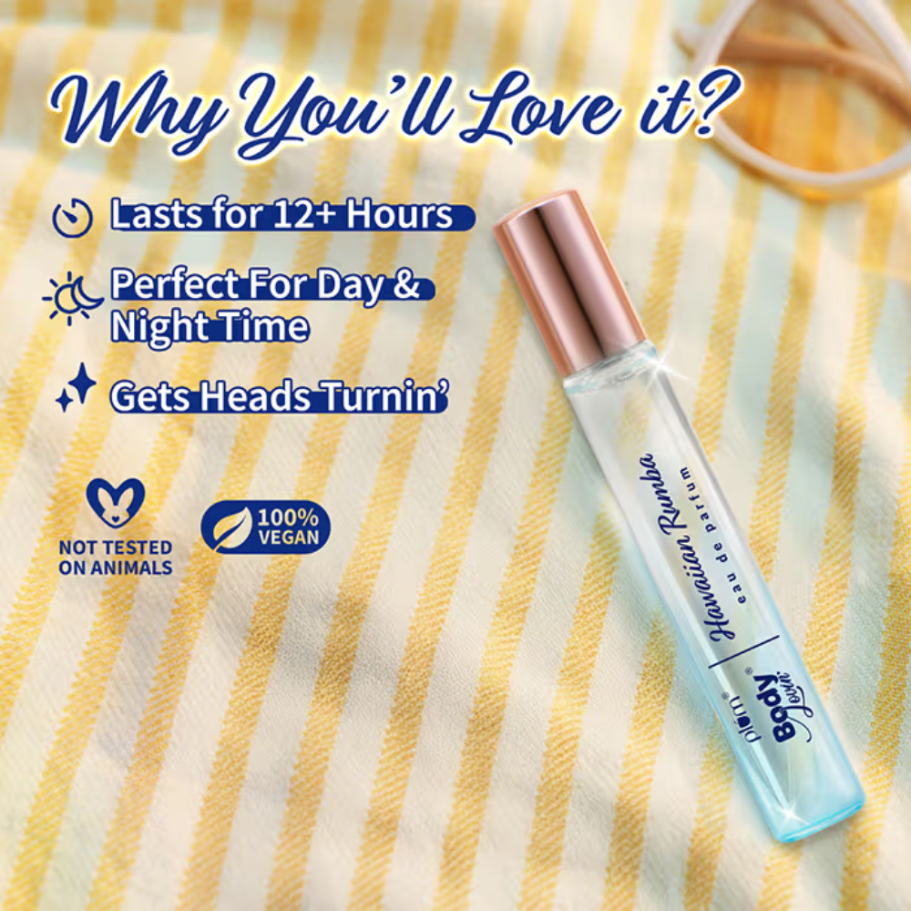 - Spray the Eau De Parfum onto your neck and pulse points.