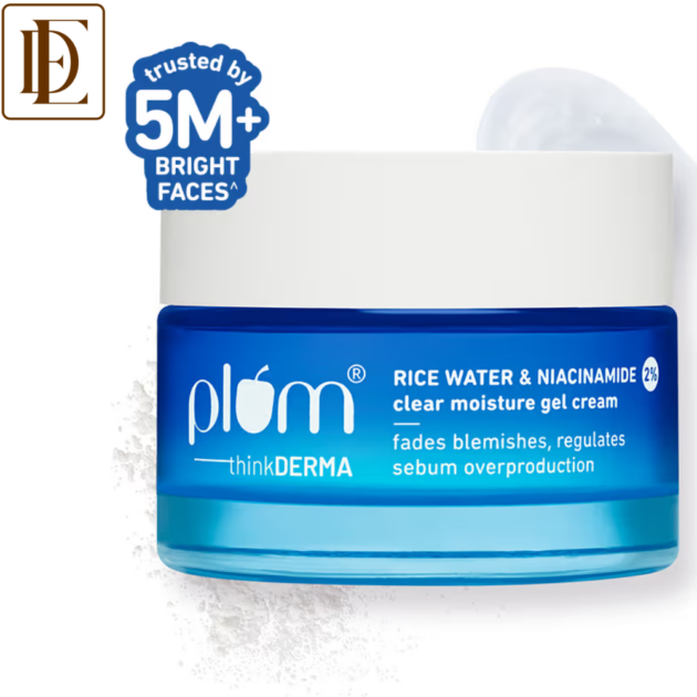 Plum Think Derma 2% Niacinamide & Rice Water Clear Moisture Gel Cream For Oil-Free, Non-Sticky Hydration (50g)