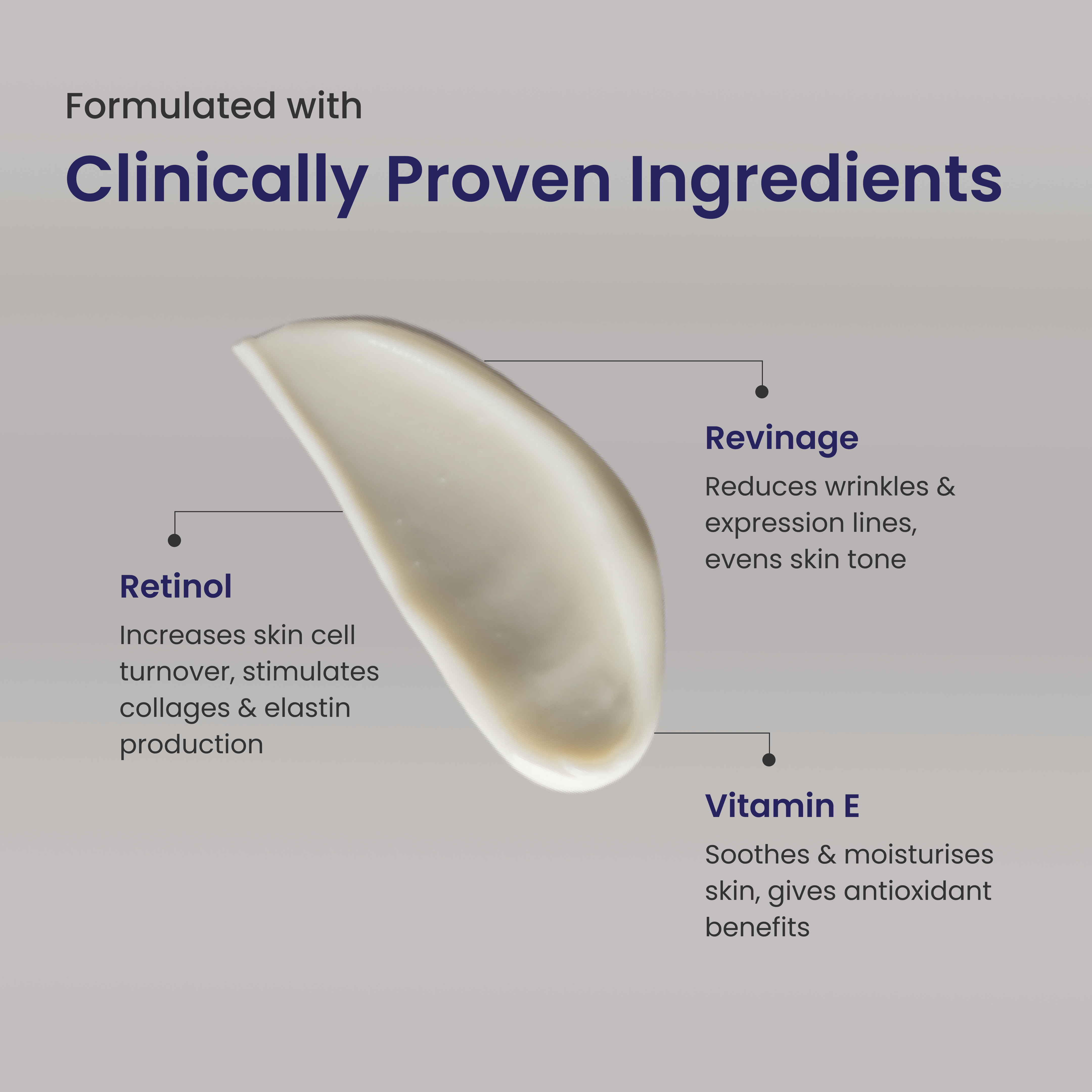 Based on clinical trials conducted on 36 individuals (male & female) for efficacy of 0.5% Retinol Night Cream (Dermatological Assessment)