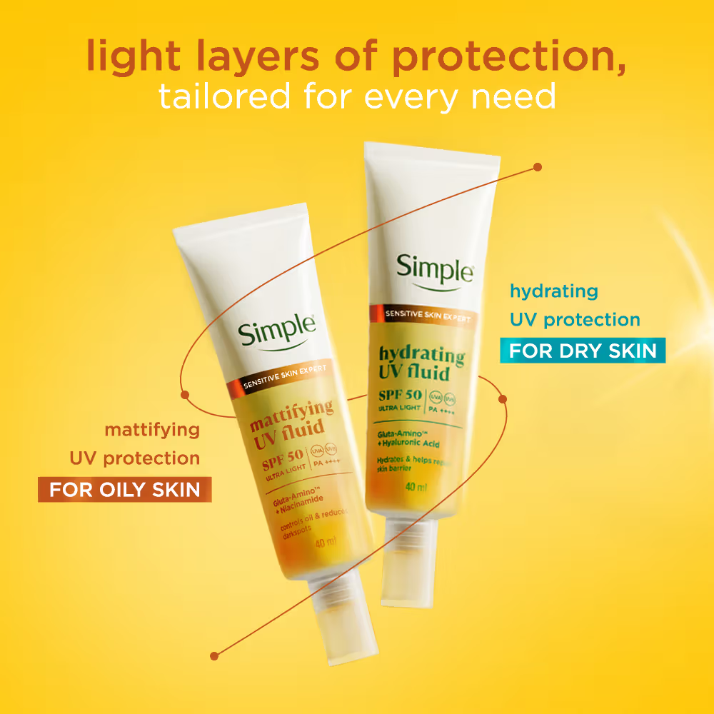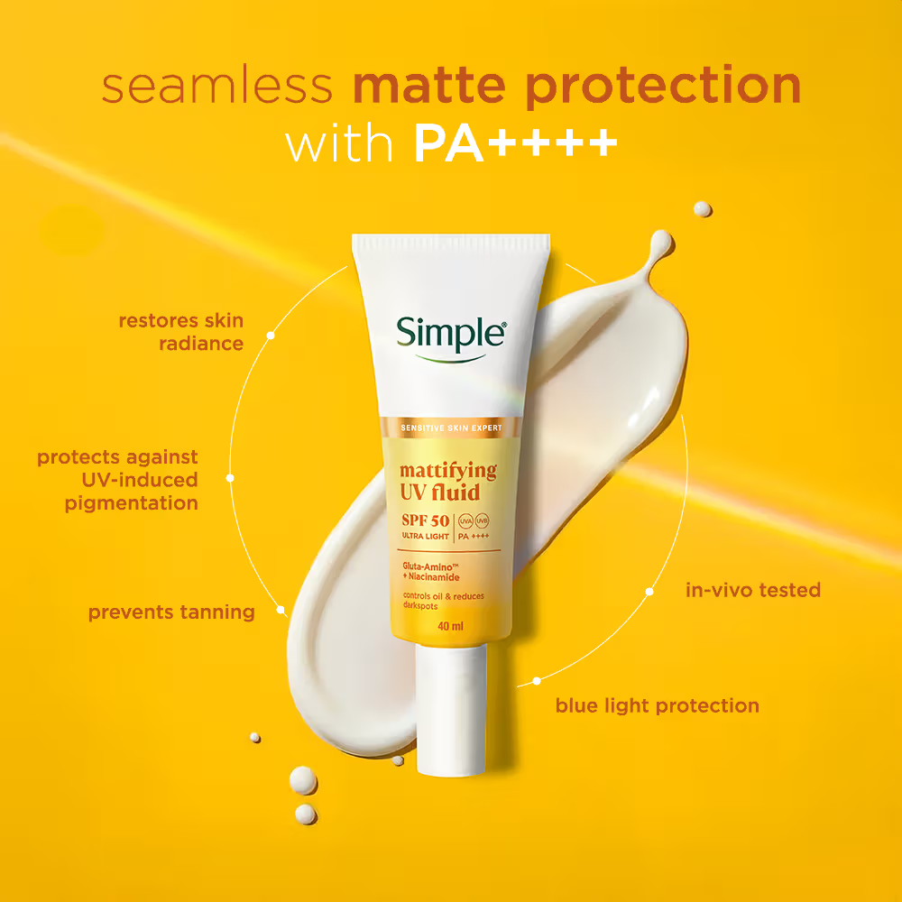 Simple Mattifying UV Fluid SPF 50 PA++++ with Niacinamide Sunscreen For Oily & Sensitive Skin (40ml)