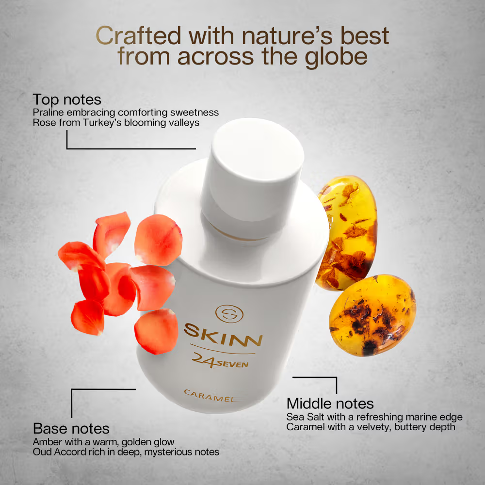Revel in the irresistible addiction of caramel. A luscious fusion of praline with a breeze of sea-salt and rich amber envelops you in a warm embrace of indulgence. Sets your vibe for every mysterious moment that follows.