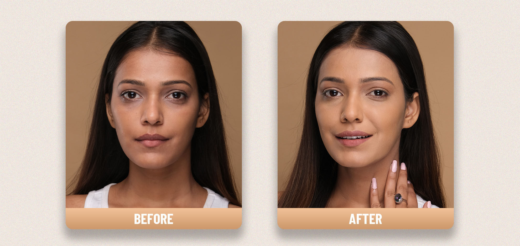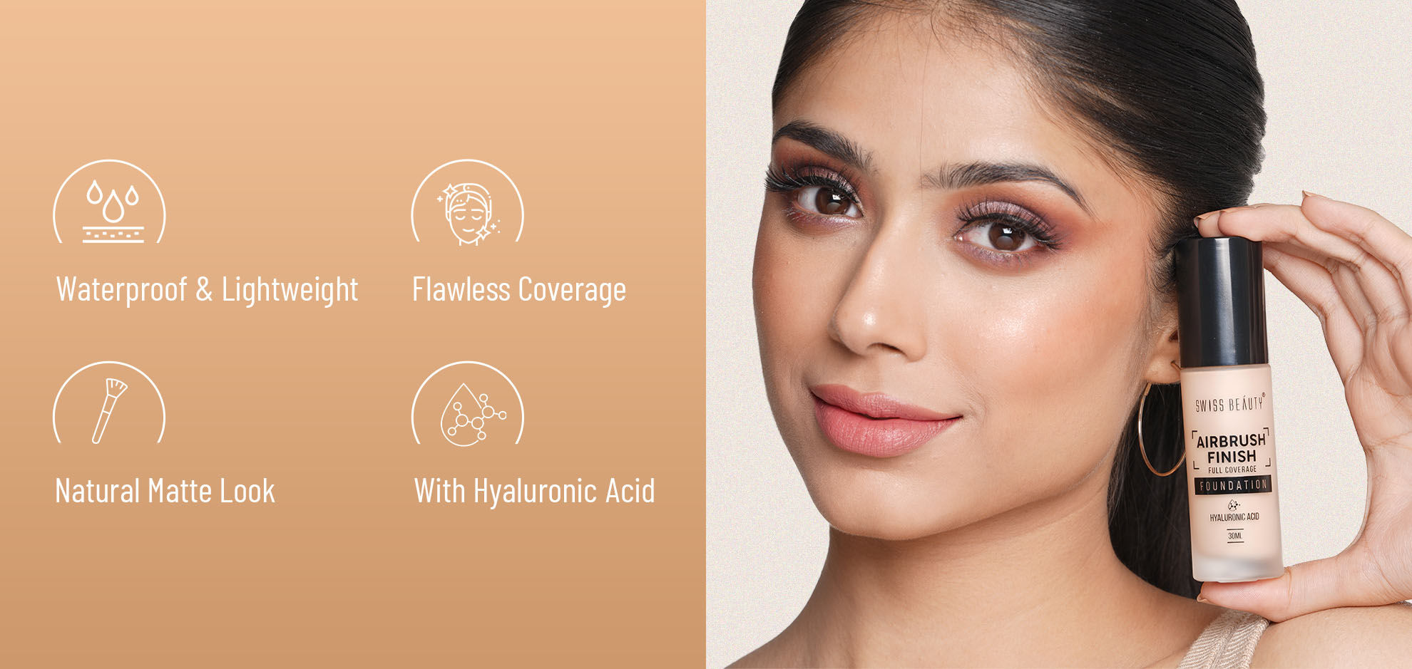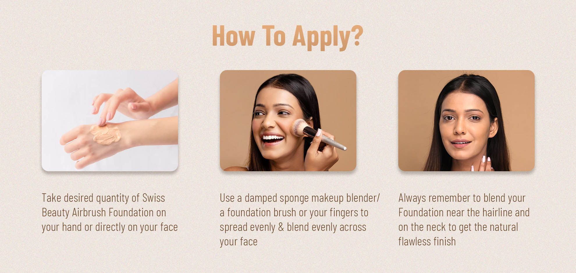 Apply foundation onto skin and blend with fingertips, brush or sponge applicator.