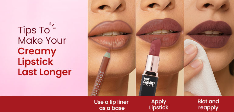 • Apply the lipstick evenly across your lips, starting from the center and moving outward.