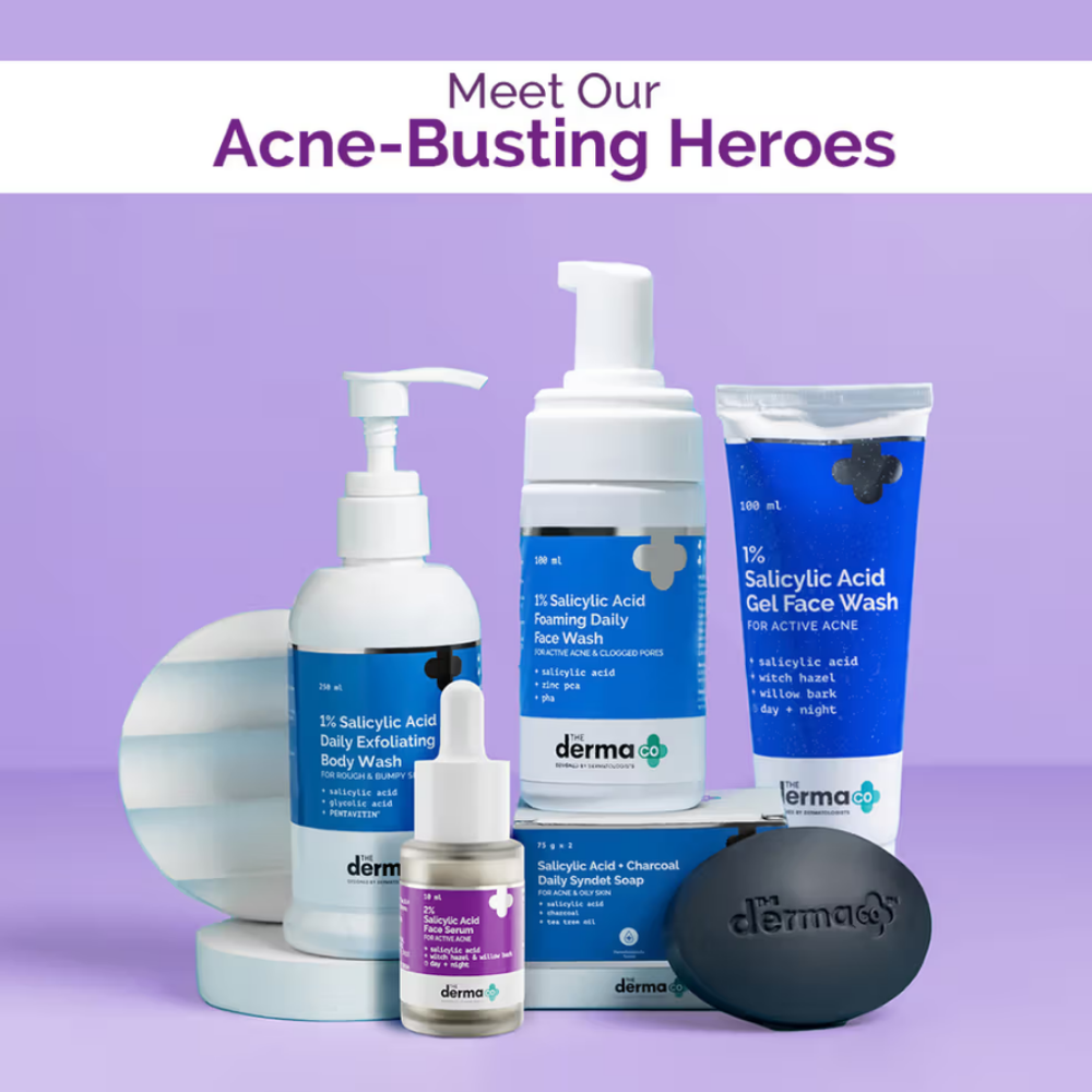 Let acne be a short story! The Derma Co. 2% Salicylic Acid Serum is a multitasking formulation that treats acne, unclogs pores, and prevents skin damage. Introduce this skincare BFF to your regimen and you’re sorted! The combination of 2% Salicylic Acid & Witch Hazel exfoliates the pores’ walls to prevent the appearance of whiteheads and blackheads. With no more sebum in the pores, it eventually stops the formation of acne. When pimples say hi, give them the best farewell with this super serum! Bring on the best of the filter-free YOU with your spotless, unique & youthful skin.