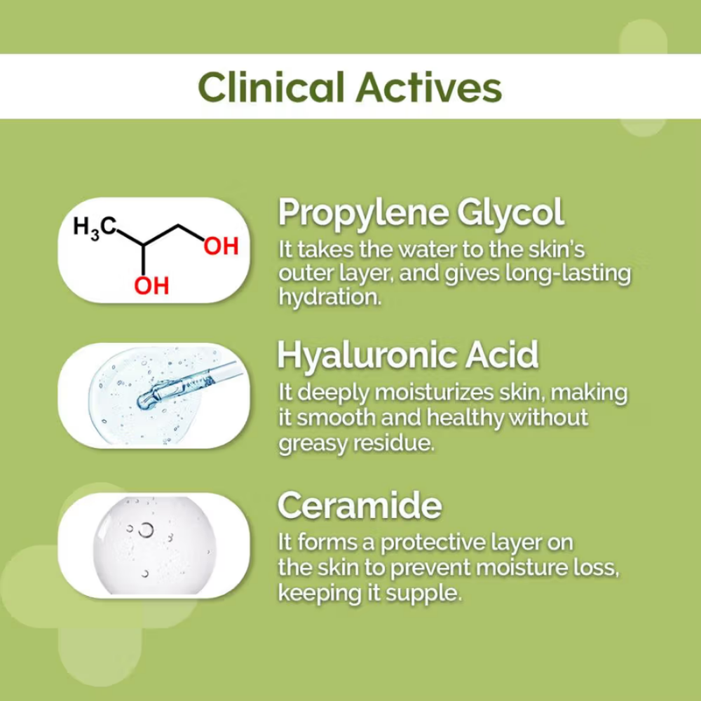 • Aqua, Propylene Glycol, Caprylic/Capric Triglyceride, Hyaluronic Acid, Xylitol, Glucose, Anhydroxylitol, Phoenix Dactylifera (Date Palm) Extract, Glycerin, Glyceryl Stearate, PEG 100 Stearate, Dimethicone, Phenoxyethanol, Ethylhexylglycerin, Cetostearyl Alcohol, C15-19 Alkane, Stearic Acid, Cetyl Palmitate, Sodium Acrylate/Sodium Acryloyldi methyl Taurate Copolymer,Isohexadecane, Polysorbate 80, Carbomer, Squalene, Trehalose, Hydrolyzed Vegetable Protein, Sodium Hydroxide, Xylitylglucoside, Disodium EDTA, Ceramide NG, Ceramide NP and Glycine Soja(Soybean) Sterols