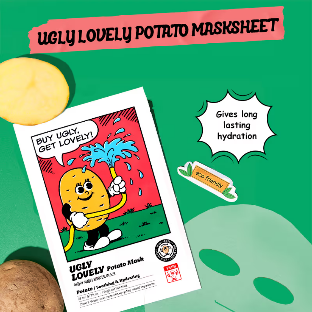 Need a quick skin pick-me up? The Ugly Lovely Potato Mask Sheet is your perfect solution! Packed with moisturizing potato, soothing madecassoside from cica, and hydrating hyaluronic acid, this marksheet leaves your skin feeling calm and refreshed. But here’s the real beauty: it’s made from upcycled, imperfect potatoes – repurposed to deliver skincare that’s both eco-friendly and effective. Buy ugly, get lovely! Join the clean, vegan beauty movement with this innovative mask that leads the way in sustainability. Sourced from imperfect farm produce, this mask transforms what’s discarded into something beautiful. Hydrate, heal, and get visibly healthier skin while supporting local farms and a greener planet.